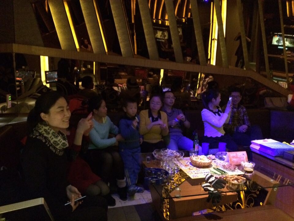 我們用相機記錄下了這美好的瞬間,8點左右,我們結(jié)束了晚餐,又到方程9+1K歌,幽暗的燈光,活躍的同事,有太多美好的感受,不知道怎么形容,我們增進了彼此的了解,一種家